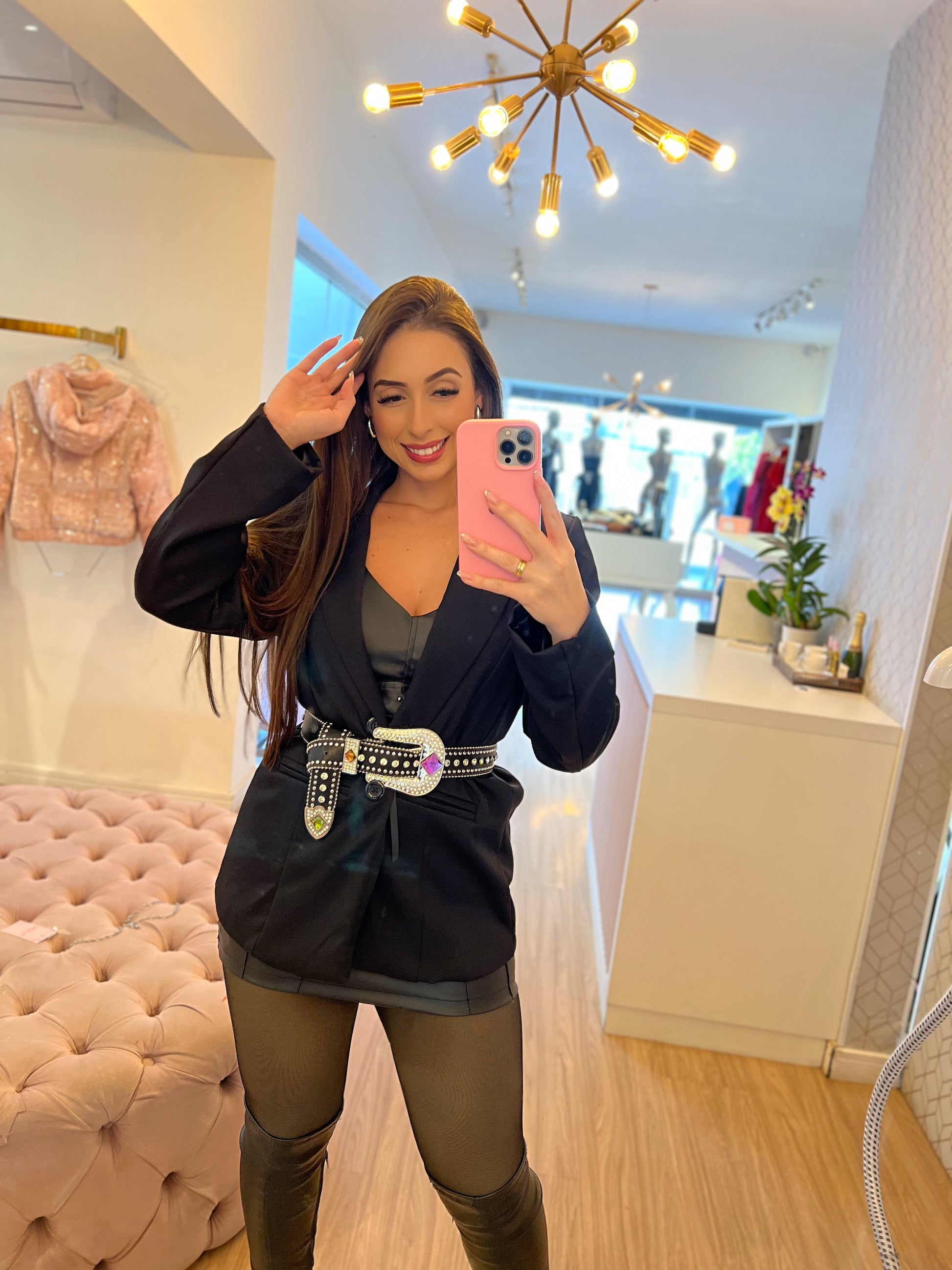 Sabe aquele blazer que veste como uma luva? É ele! Totalmente forrado com tecido acetinado, esse blazer entrega elegância com conforto e um toque de sofisticação. O caimento é simplesmente perfeito, perfeito, perfeito — valoriza a silhueta, estrutura o look e transforma qualquer produção em algo chic sem esforço. Ideal para usar aberto ou fechado, do trabalho ao jantar. Um verdadeiro curinga de impacto no guarda-roupa!