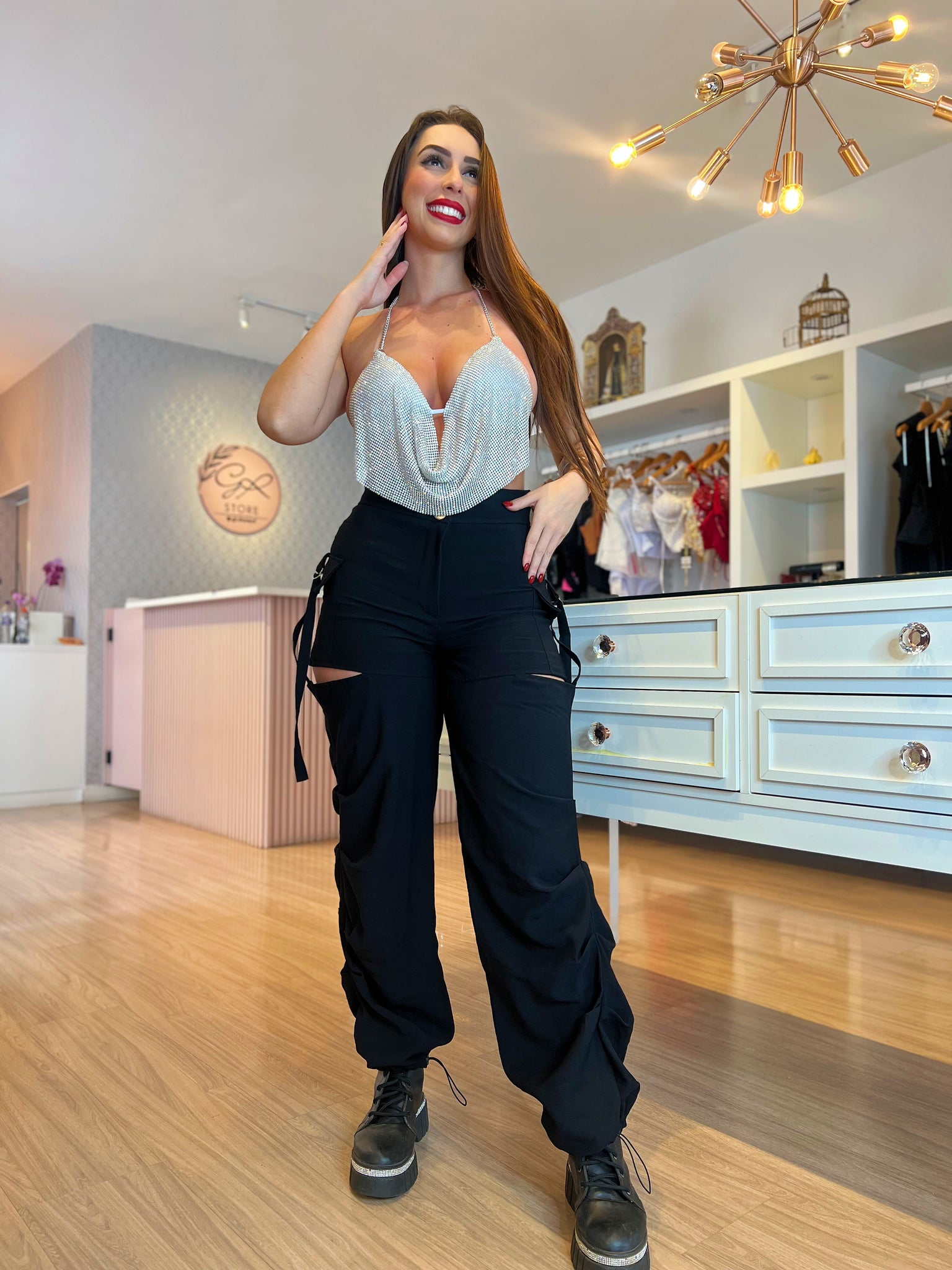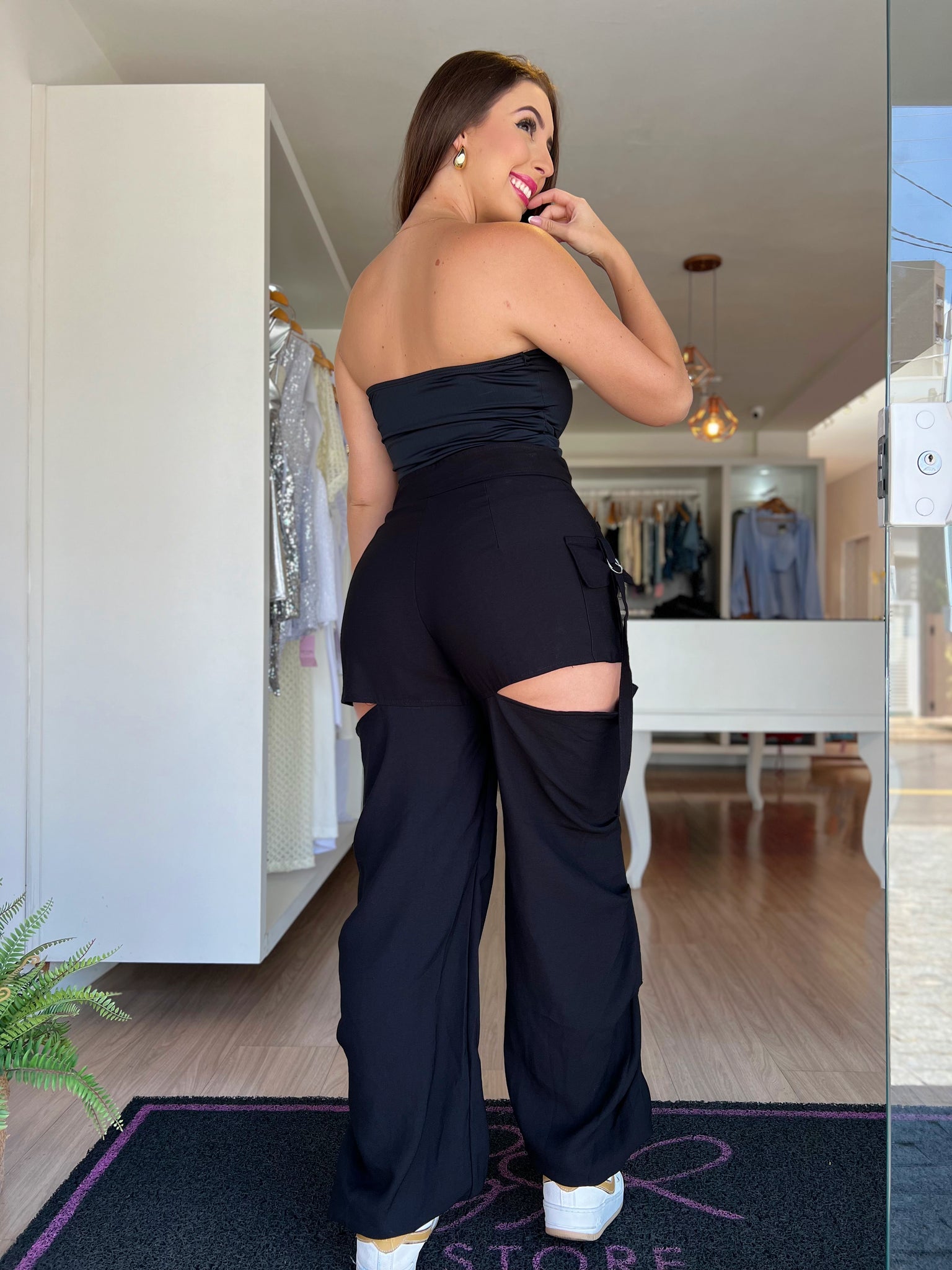 Com modelagem cintura alta, bolsos cargo funcionais e recortes laterais que trazem um toque moderno e ousado, ela é ideal pra quem ama estar estilosa em qualquer ocasião.