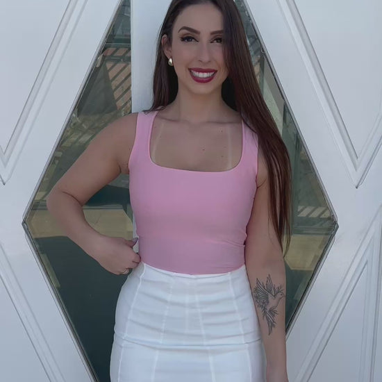 - Design com costas mais largas e alças largas, permitindo o uso com sutiã sem perder o estilo.