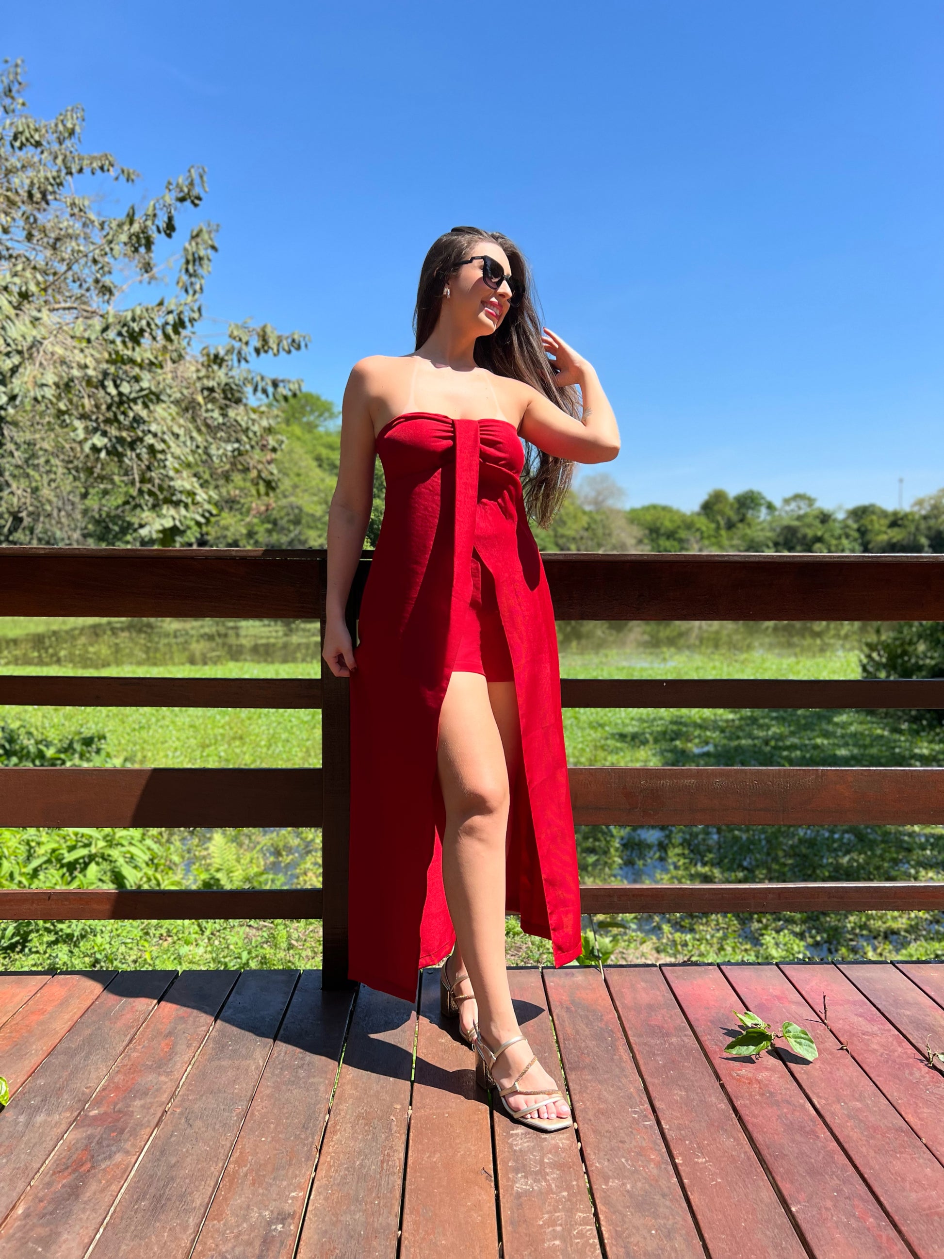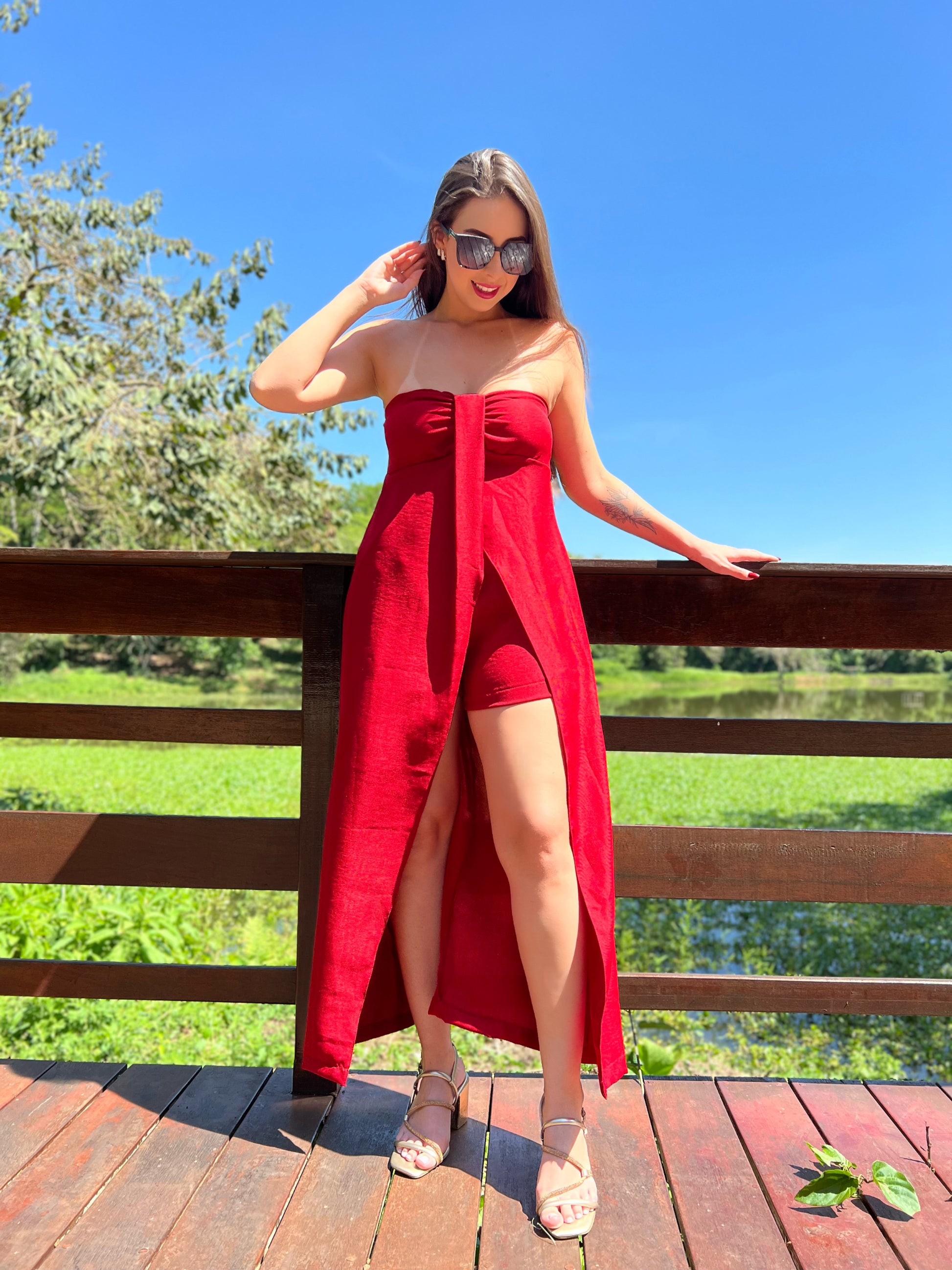 As peças podem ser usadas juntas, formando um look completo e cheio de estilo, ou separadas, permitindo diversas combinações para o dia a dia.