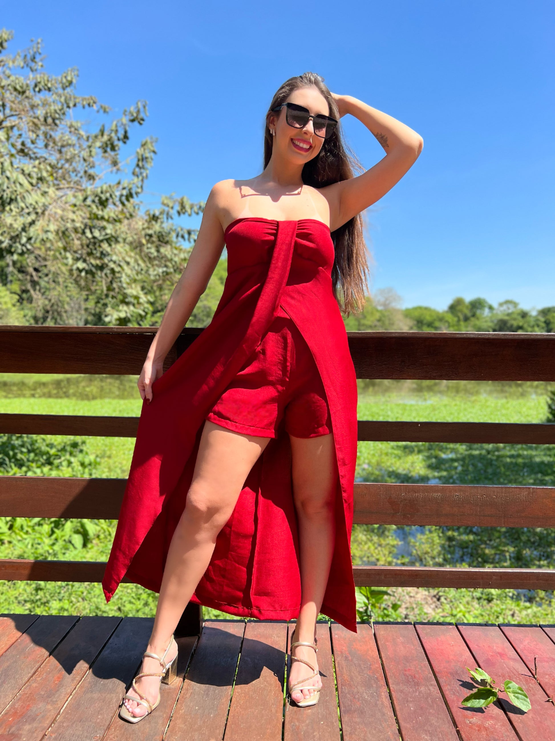 Conjunto versátil e estiloso, composto por blusa e shorts.