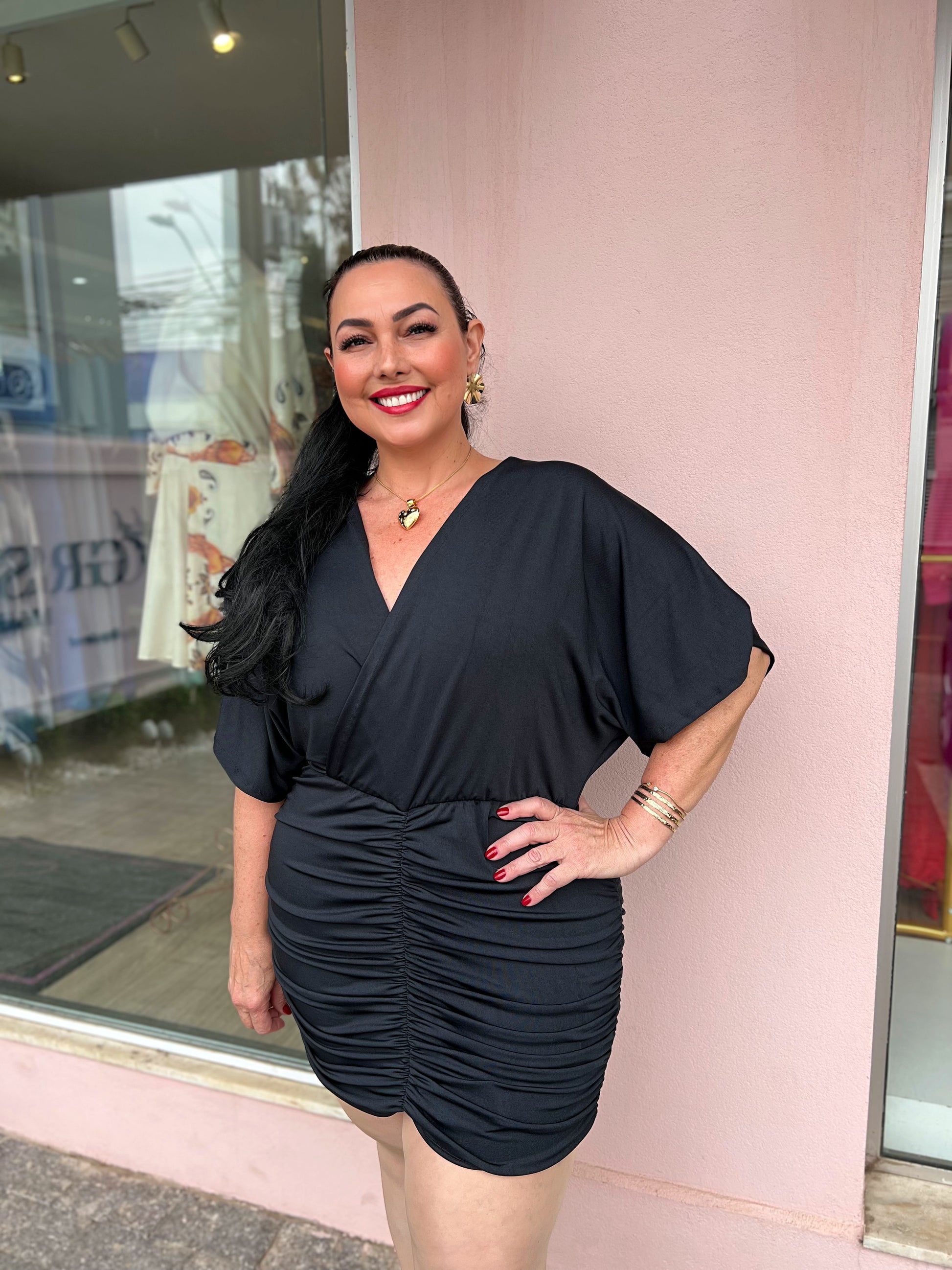 Um modelo que une estilo e caimento impecável! Esse vestido possui drapeado na frente e nas costas, que além de valorizar as curvas, ajuda a disfarçar a barriguinha e conta com detalhe especial que realça o bumbum. As mangas estilo morcego trazem sofisticação e conforto, enquanto o decote garante um toque de sensualidade elegante. Confeccionado em tecido com bastante elasticidade, veste do 44 até o 48/50, modelando o corpo e deixando o visual ainda mais poderoso.