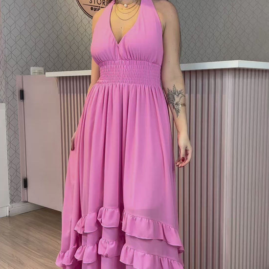 ✨ Vestido Longo Tule com Amarração no Pescoço ✨